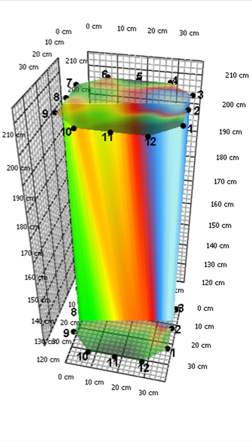 3D hangsebesség mérés eredménye tartóoszlopon károsodott farészekkel
