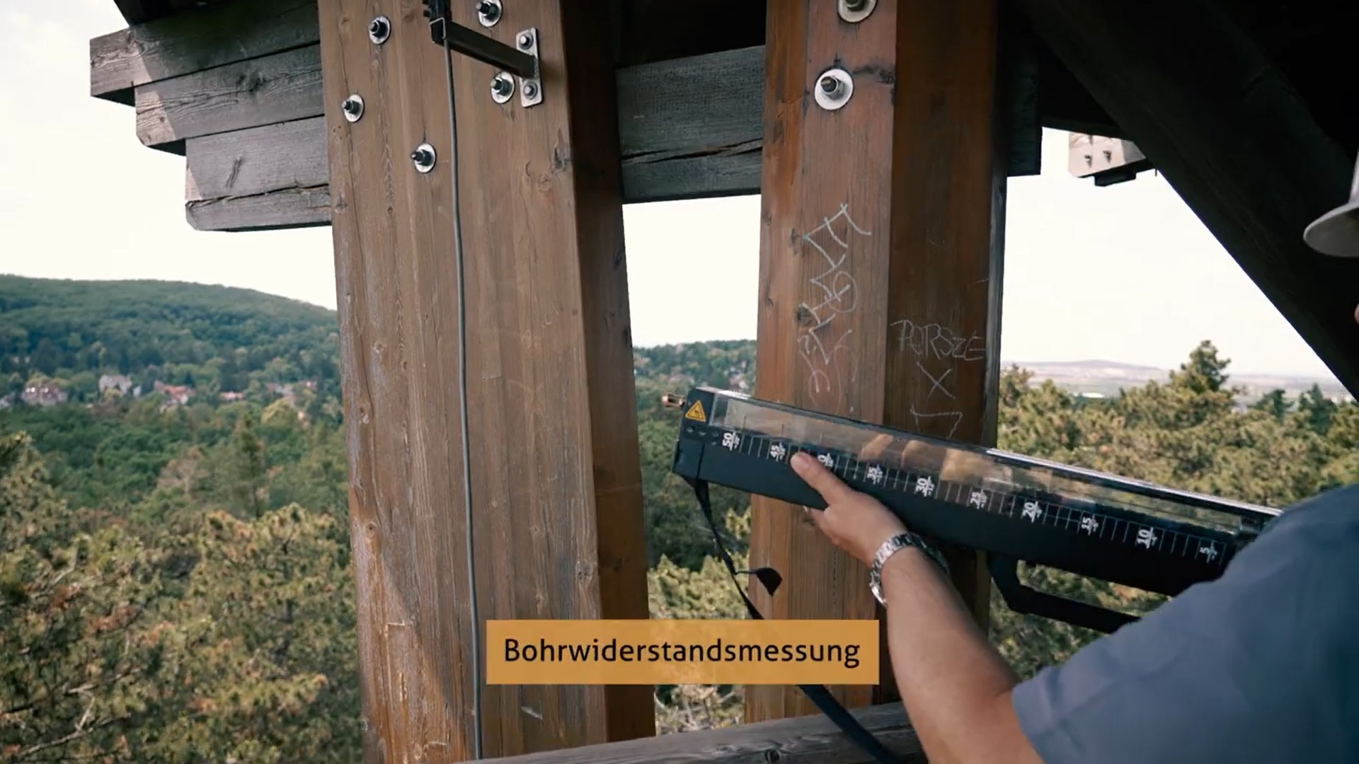 Hangsebesség mérés faszerkezetű kilátó tartóoszlopán FAKOPP műszerrel