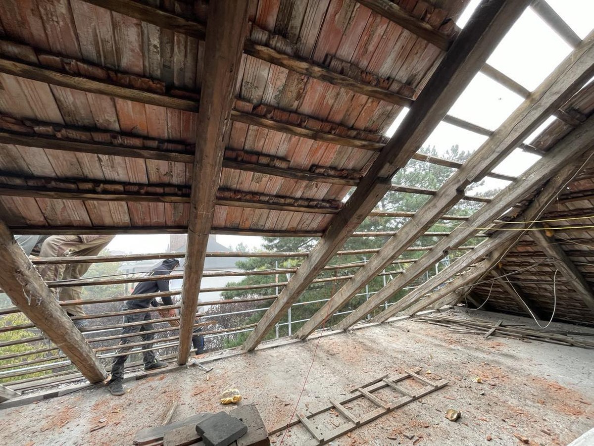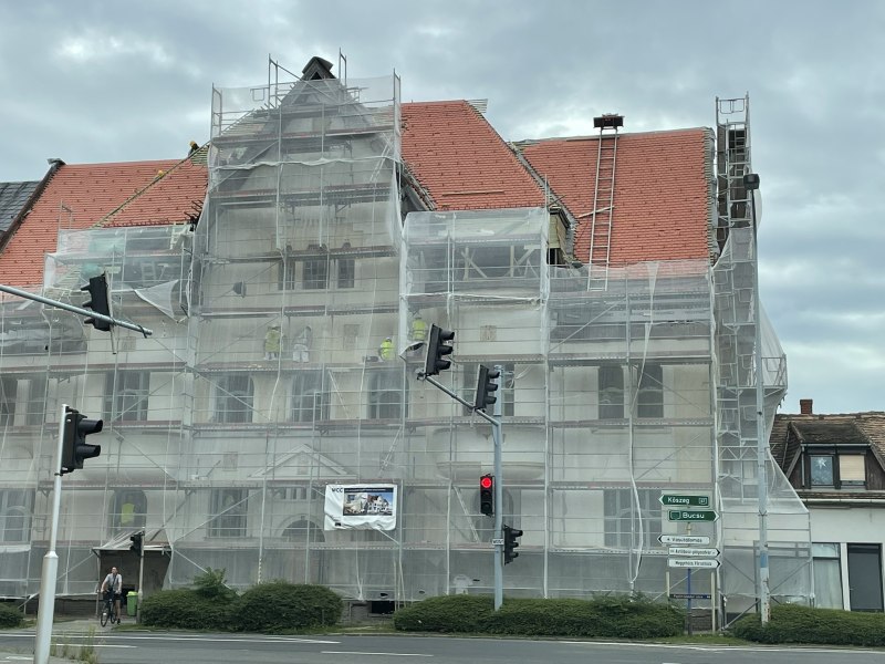 A szombathelyi Mathias Corvinus Collegium (MCC) tehetséggondozó és oktató központ tetőfelújítása: meglévő faszerkezet felújítása és faanyagok védőszeres kezelése, szerkezeti megerősítések, teljes héjazat cseréje.